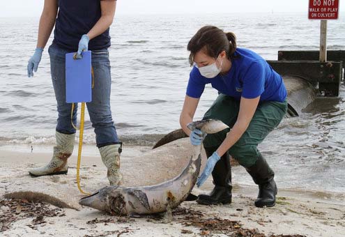 درماههاي اخير، بيش از 290 لاشه دلفين ونوزادان آنها همراه با تعداد زيادي لاشه لاكپشت هاي دریایی آسيب ديده كه در اثر عوارض شديد اين فاجعه تلف شده بودند، به ساحل خليج مكزيك آورده شده اند.