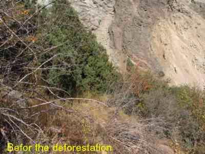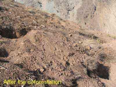 تصوير شماره يک -در سمت راست تصویر ، عرصه پاکتراشی شده و در بالادست دامنه و