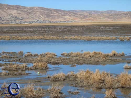 ارتفاعات مشرف به تالاب . همچنین تعداد بسیار زیادی زاغ . در بخش خشک شده