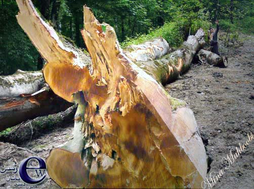 مجموعه دوم : ذبح درختان راش Fagus orientalis چند صد ساله توسط هیولای جنگل خوار چوب فریم درمنطقه حفاظت شده بولا