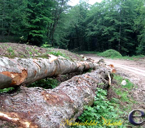 مجموعه دوم : ذبح درختان راش Fagus orientalis چند صد ساله توسط هیولای جنگل خوار چوب فریم درمنطقه حفاظت شده بولا