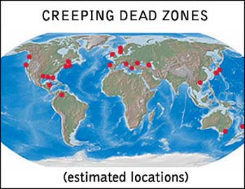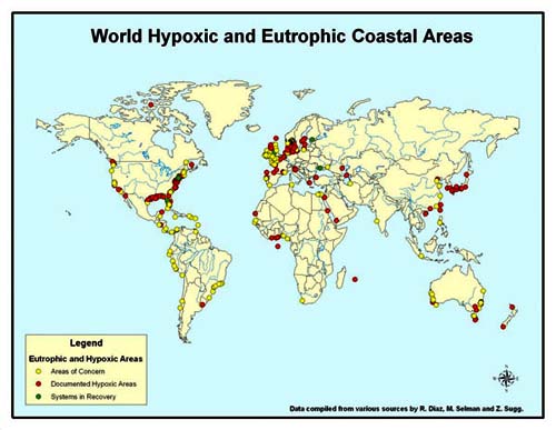 سراسر جهان در اثر این پدیده به نواحی مرده تبدیل شده اند ، که اگر مناطق ساحلی