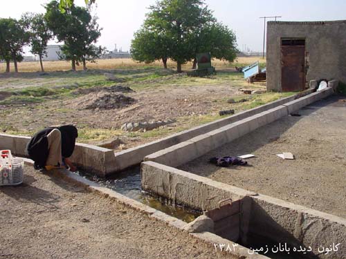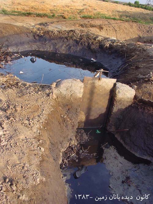روستاييان در داخل اراضي کشاورزي براي تصفيه نسبي آب آلوده به نفت