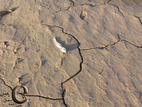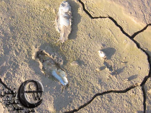 و ماهیان مرده در بخشی از بستر خشک شده تالاب بین