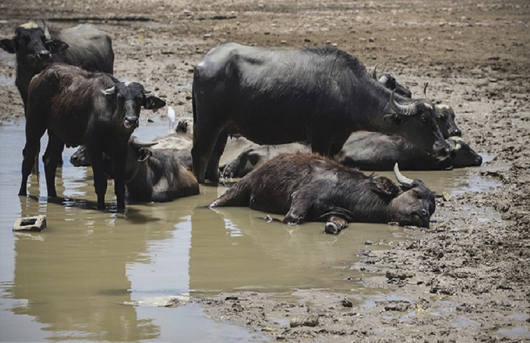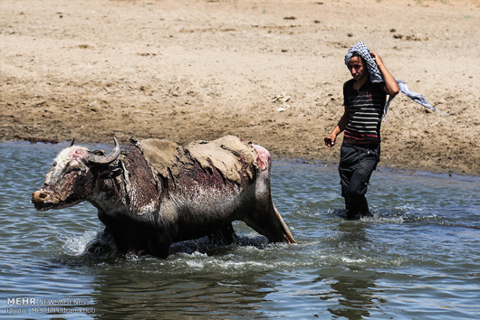 گاومیش در روستای «رُمیم» از بخش بستان شهرستان دشت آزادگان در آتش سوزی