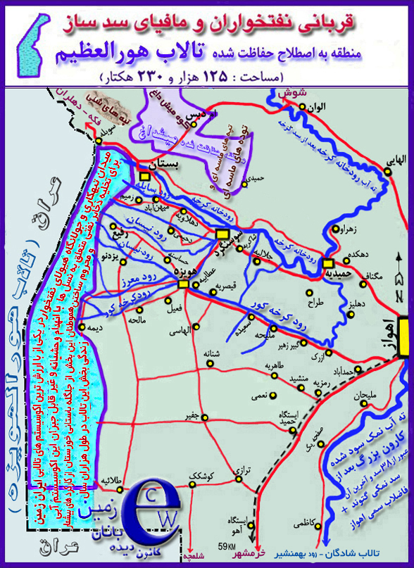 و بقیه در خاک عراق است. منبع اصلی آب تالاب هورالعظیم رودخانه