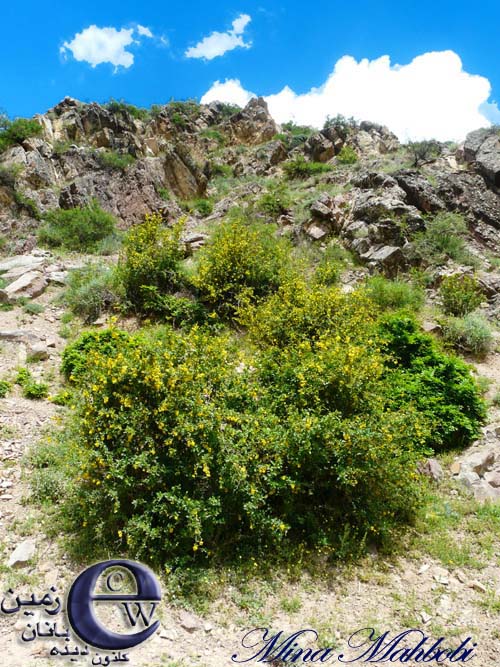 نمایی از شکوفه های درختچه زرشک در فرو دست ارتفاعات پارک ملی کیاسر