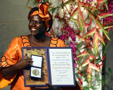 وی به علت سهمي كه در توسعه پايدار، دموكراسي وصلح داشت برنده جايزه صلح نوبل در سال 2004 گرديد ، كه براي كشور كنيا ومردم سراسر افريقا غروربرانگيز بود.