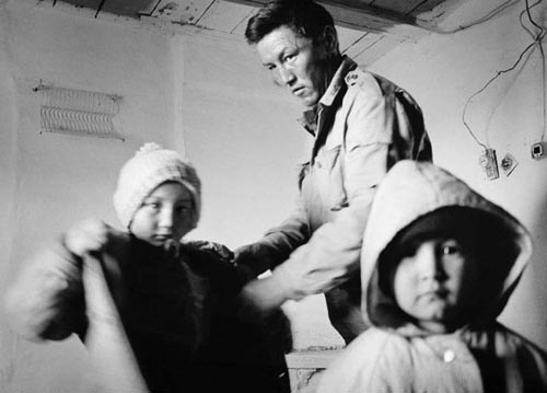 Ergasy Sultanat ودو تا از فرزندانش در مزرعه شان . اين مزرعه به فاصله 3 كيلومتر از درياچهBalapan آلوده به مواد راديواكتيو قرار دارد.