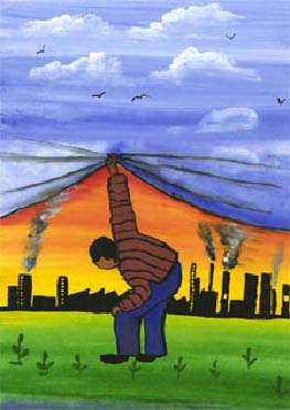 ارائه شده به نمایشگاه ،ترس کودکان از تخریب کره زمین نشان داده