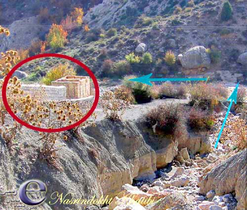 فلش های آبی = فلش آبی اولی ( پایین به بالا ) بستر سیلابی یکی از آبریز های منتهی به سفید رود را نشان می دهد و فلش آبی دوم ( از راست به چپ ) مسیر سفید رود را نشان می دهد