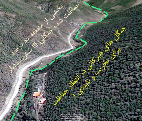 تصویر ماهواره ای Google-8/12/2010 از منطقه ده درصد حفاظت شده جنگلی شش رودبار - جنگل های باستانی هیرکانی مازندران - سواد کوه