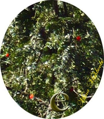 نمای نزدیک تر از میوه سرخ درخت سرخدارTaxus baccata