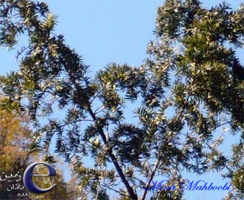 نمای نزدیک تر از برگ درخت سرخدارTaxus baccata