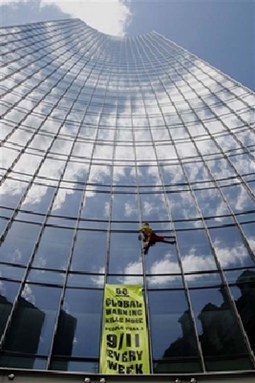 طرفدار محیط زیست بنام الن روبرت در روز 7 جولای 2008 از ساختمان 154 طبقه ای