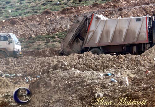 زباله های ساری - کامیون زباله در حال تخلیه درست در کنار جاده